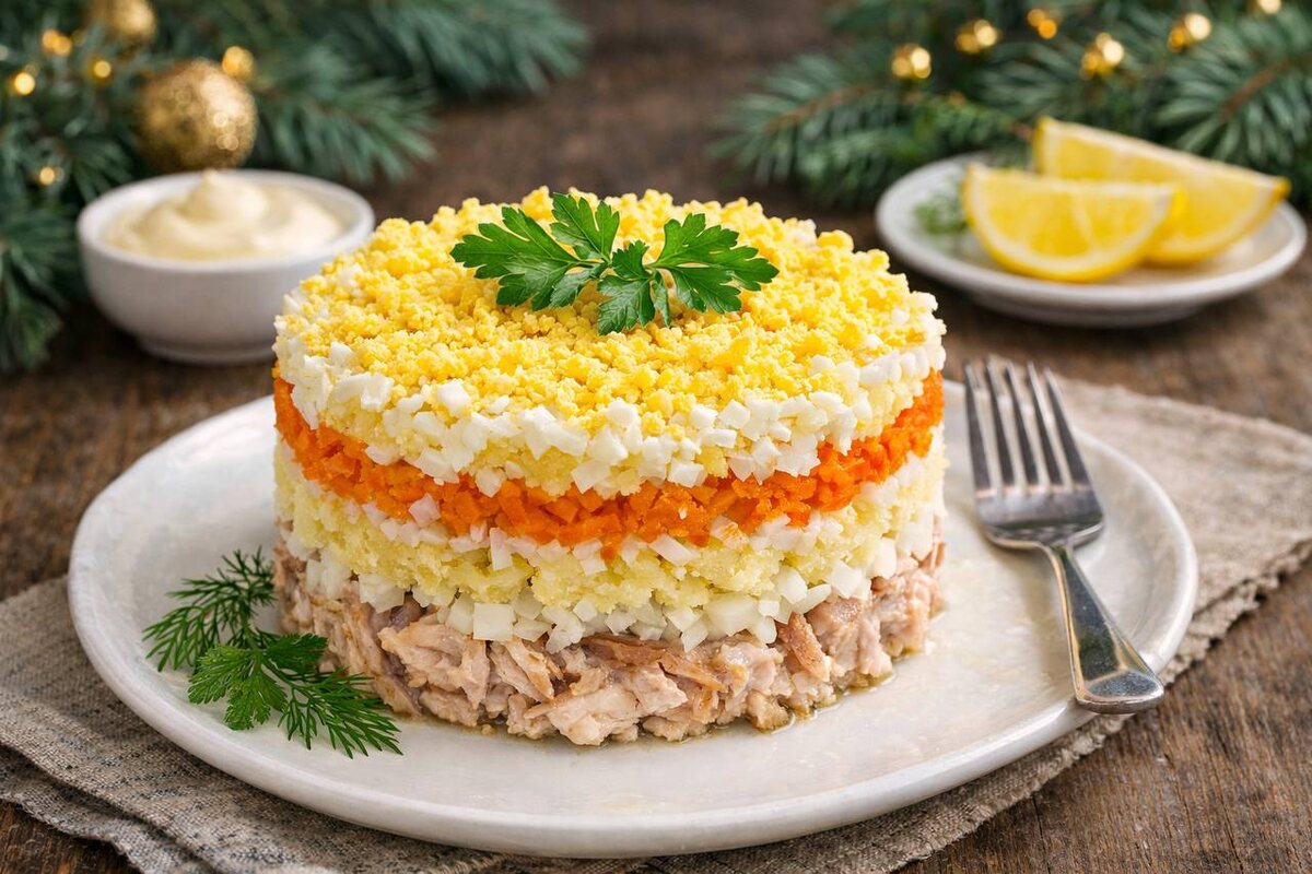 Есть некоторые салаты, которые успели стать неизменной частью новогоднего стола — несмотря на все обещания приготовить что-то новое. Мимоза, безусловно, занимает в этом списке одно из первых мест. Она знакома всем, но может удивить своей капризностью: то слишком сухая, то резкая, то вкус рыбы затмевает остальные ингредиенты.