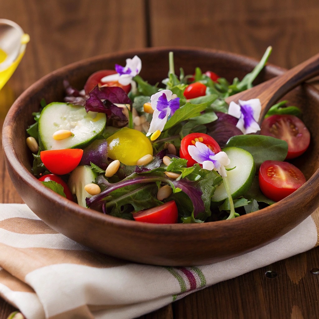 1. Съедобный салат с лепестками фиалки и рукколой