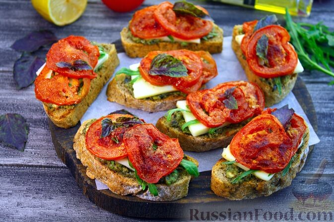 Брускетта с запечёнными помидорами, авокадо и моцареллой – это настоящий кулинарный шедевр. Хрустящий кусочек хлеба, обжаренный до золотистой корочки, готовится с ароматными томатами, запечёнными с пряностями. Намазка из авокадо с добавлением базилика добавляет блюду изысканности и свежести.
