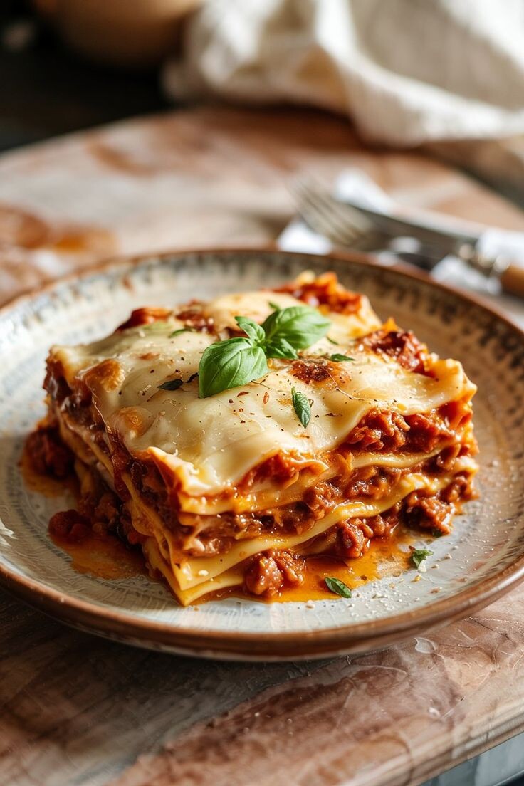 Дайте лазанье постоять 10 минут перед нарезкой — так она будет легче резаться. Подавайте с зеленым салатом и хрустящим хлебом.