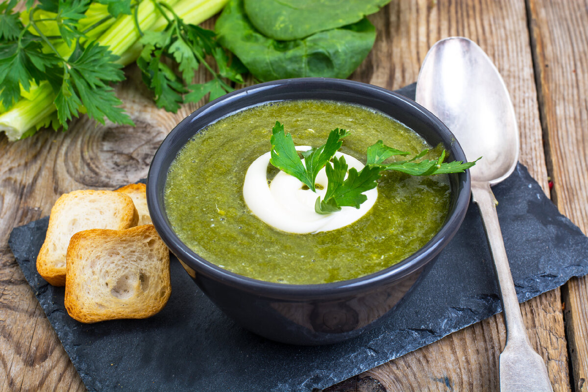 Суп-пюре со шпинатом — это не только изысканное первое блюдо, но и отличная возможность включить полезные зеленые листья в повседневное меню. Этот цветочный овощ способствует улучшению зрения, снижает окислительный стресс и помогает поддерживать нормальное артериальное давление благодаря своему богатому составу. Шпинат полон питательных веществ и антиоксидантов, что делает его незаменимым в рационе. Как его применять в кулинарии? Один из способов — это чудесный суп-пюре, который может стать настоящим шедевром на вашем столе.