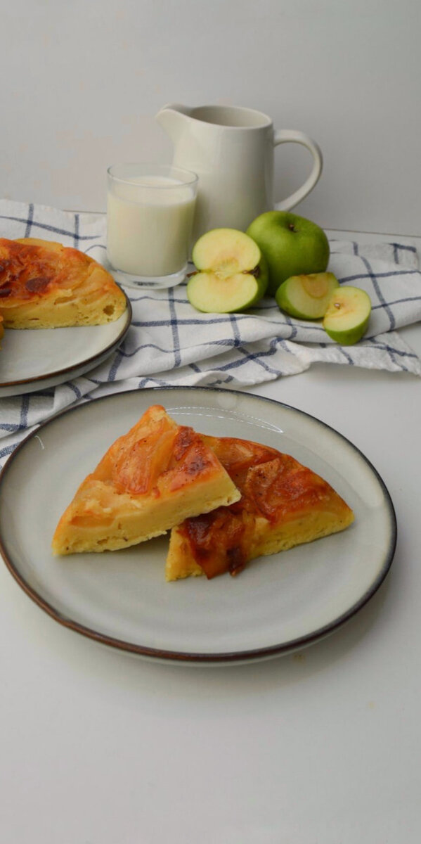 Как только пирог подрумянится, перевернуть его на тарелку и дать немного остыть. Пирог можно подать с теплыми сливками или свежим холодным молоком.