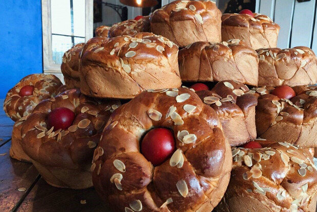 Цуреки — это не просто выпечка, а настоящая греческая пасхальная традиция. Эти ароматные куличи, сплетенные в косу, щедро украшаются лепестками миндаля и крашеными яйцами, что придает им особый шарм и красоту. Вот как можно повторить этот восхитительный рецепт у себя на кухне.