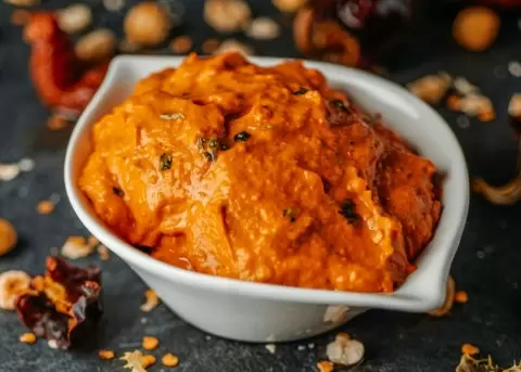 Основу соуса составляют запеченные красные перцы, которые соединяют с молотым миндалем, оливковым маслом и уксусом. В результате получается однородная, густая консистенция с ореховым оттенком, которой можно великолепно намазать на свежеиспечённый хлеб.
