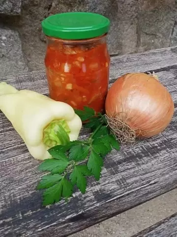 По истечении времени, процесс варки продолжается еще 20 минут. После того как салат достиг нужной консистенции, его раскладывают по заранее стерилизованным банкам и закатывают.