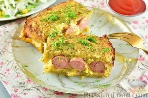Картофельная запеканка с сосисками и сыром — это оригинальность в привычных продуктах. Сосиски, завернутые в ломтики сыра, укладываются между слоями натертого сырого картофеля с зеленью и пряностями. Получается сытно и невероятно вкусно, сделает ваш обед особенным.