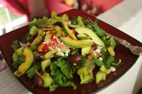 Овощной микс с авокадо и фетой - восхитительное сочетание из помидоров, огурцов, болгарского перца и сладкого авокадо. Все ингредиенты следует нарезать кубиками, добавить к ним кусочки феты и немного свежей зелени: укропа или петрушки. Заправка из оливкового масла и лимонного сока придаст салату яркий вкус.