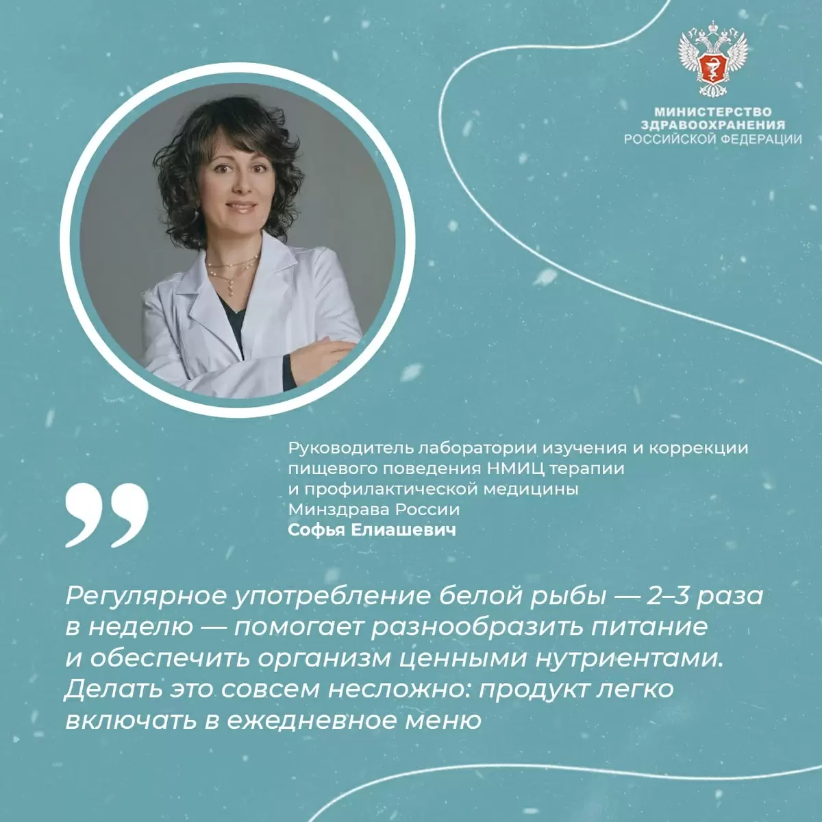 По словам Софьи Елиашевич, руководителя лаборатории изучения и коррекции пищевого поведения НМИЦ терапии и профилактической медицины Минздрава России, белая рыба тем более привлекает внимание, поскольку она легкая, питательная и универсальная. К белым видам рыбы относятся такие сорта, как минтай, треска, судак, хек, навага и пикша. Эти рыбы не только доступны по цене, но и являются одним из лучших источников легко усваиваемого белка.