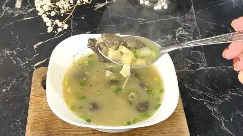 1. Начните с тщательной подготовки сморчков: промойте их под холодной водой, чтобы удалить мусор. Замочите грибы на 2 часа, а затем хорошо промойте еще раз.