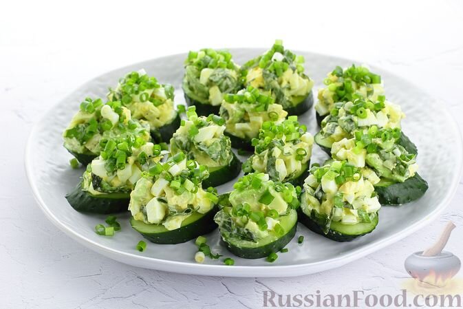 Огуречные канапе с авокадо и яйцами. Эта закуска, несомненно, привлечет внимание гостей. Соедините вареные яйца, нарезанные кубиками, с авокадо и свежим базиликом. Половинки огурцов послужат отличной базой для создания мини-канапе. Не забудьте добавить немного лимонного сока и майонеза для легкой заправки, чтобы ввести дополнительные ароматы в блюдо.