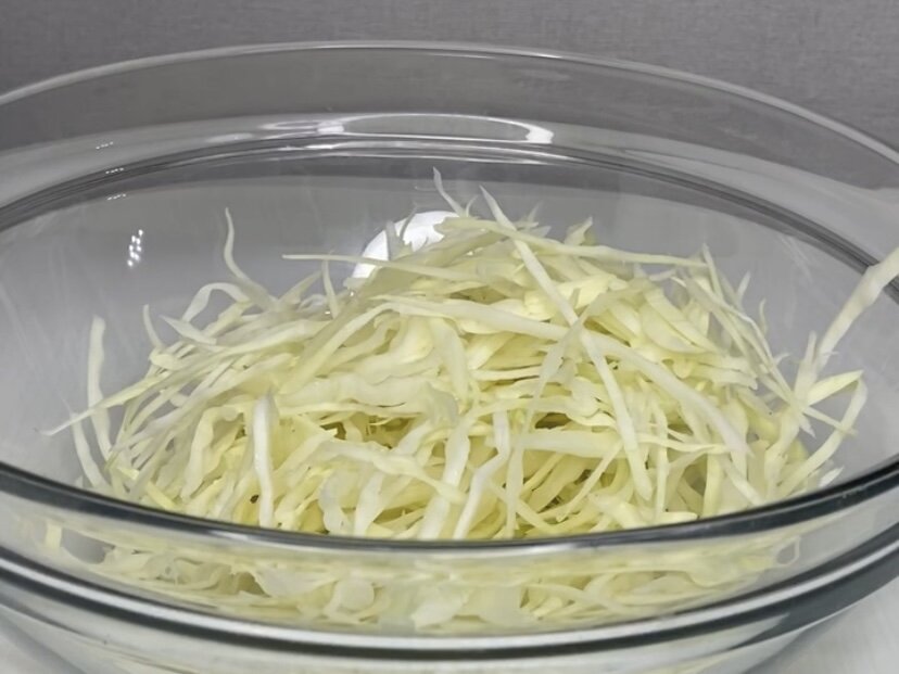 Легкий и хрустящий, этот салат прекрасно дополнит мясные закуски. Основой для него лучше выбрать свежую белокочанную капусту. Капустные листья следует мелко нашинковать и еле-еле прижать руками, чтобы они выпустили сок.