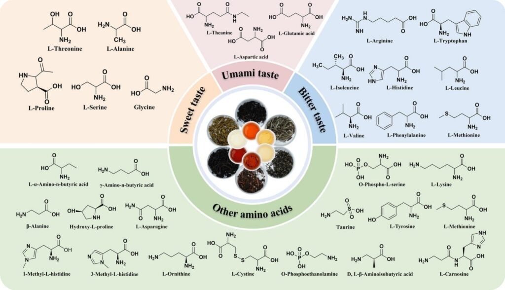 Исследования китайских ученых выяснили, в каких сортах чая содержится наибольшее количество аминокислот. Анализируя 2983 различных вида, они выявили значительное разнообразие в составе аминокислот, насчитывающих 32 уникальные комбинации.