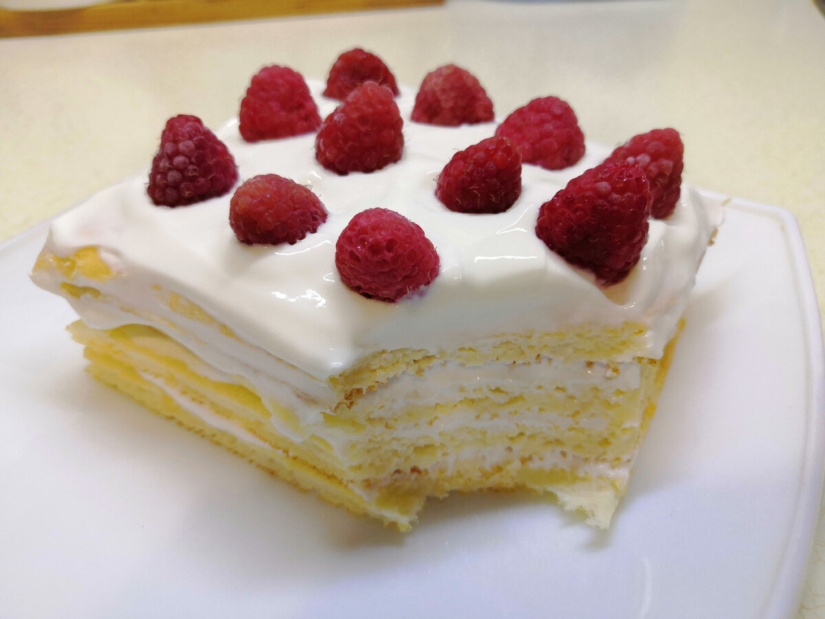 Для приготовлении крема просто смешайте 200 г греческого йогурта с двумя пакетиками подсластителя. Готовый бисквит остужают и нарезают на 4 части. Каждый кусочек покрывается кремом, после чего десерт собирается в единое целое. Украсить пирожное ягодами по желанию, и можно наслаждаться восхитительным угощением уже сейчас!