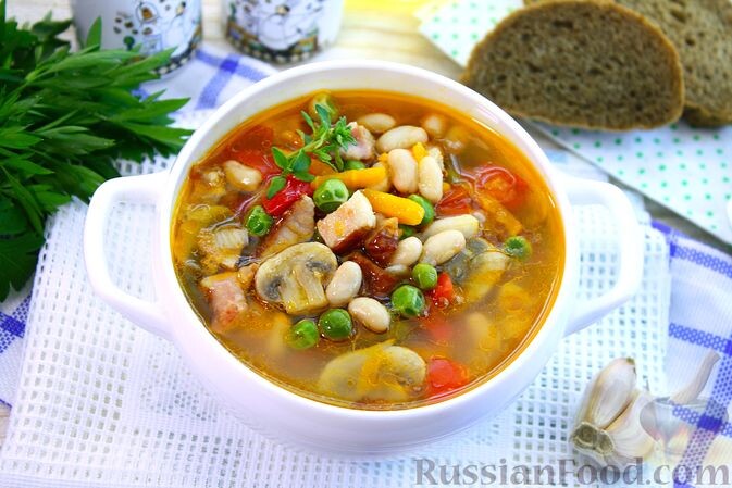 - Суп с беконом и фасолью: Сытное и ароматное блюдо, в котором яркие овощи гармонируют с копченым беконом. Отличный способ поднять настроение на обед!