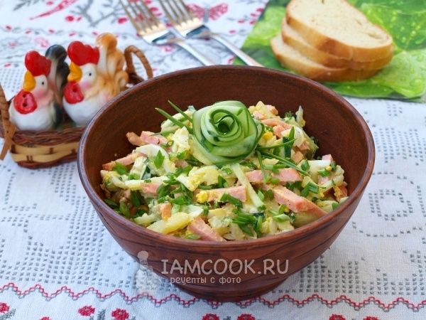 Сытный картофельный салат с колбасой