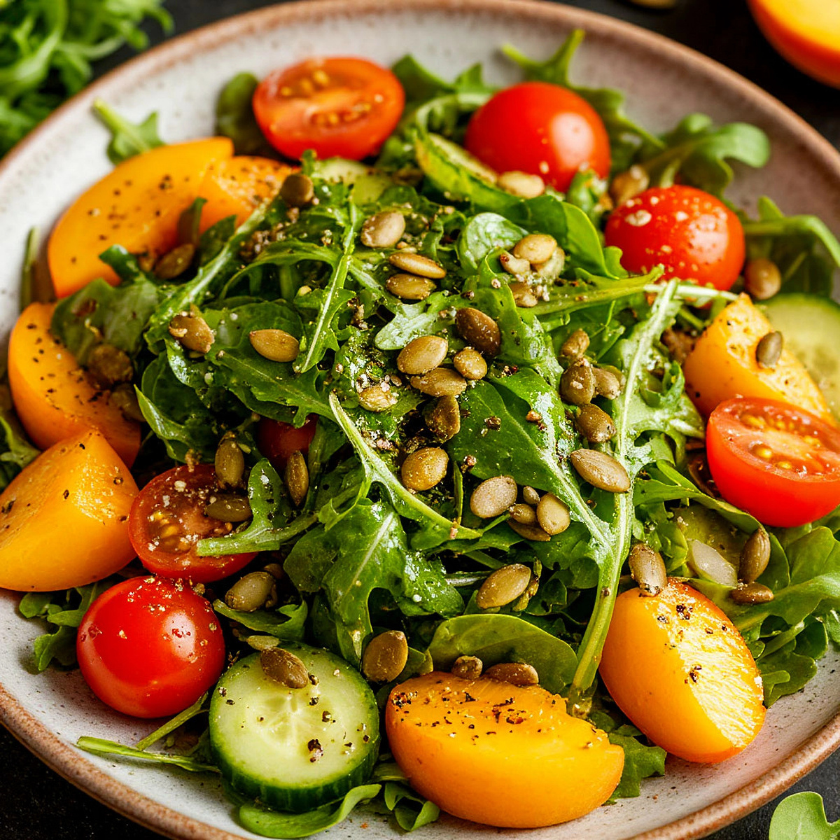 Этот салат станет отличным дополнением к блюдам на гриле или просто с хрустящим багетом. Для разнообразия можно добавить авокадо или заменить нектарин на манго. Приятного аппетита!