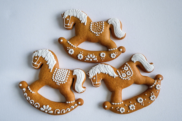 После оформления плоские печенья можно подсушить в духовке при 50 градусах в течение нескольких минут. Печенье в форме лошадок с глазурью готово – пора угощать близких на празднике!