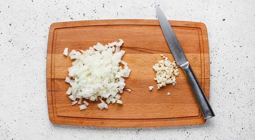 Для начала, крупу необходимо тщательно промыть под холодной водой, чтобы избавиться от лишнего мусора. После этого откиньте гречку на сито и дайте ей слегка обсохнуть. Параллельно подготовьте репчатый лук и чеснок: нарежьте лук маленькими кубиками или тонкими кольцами, а чеснок мелко порежьте.