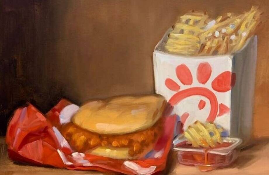 На холстах Верье можно увидеть не только любимые всеми бургеры и картошку фри, но и блюда из известных фастфудов и банки с газировкой. Эти элементы представляют собой современное отражение классических натюрмортов XVII века, где узнаваемые бренды предстают в почти величественном исполнении.