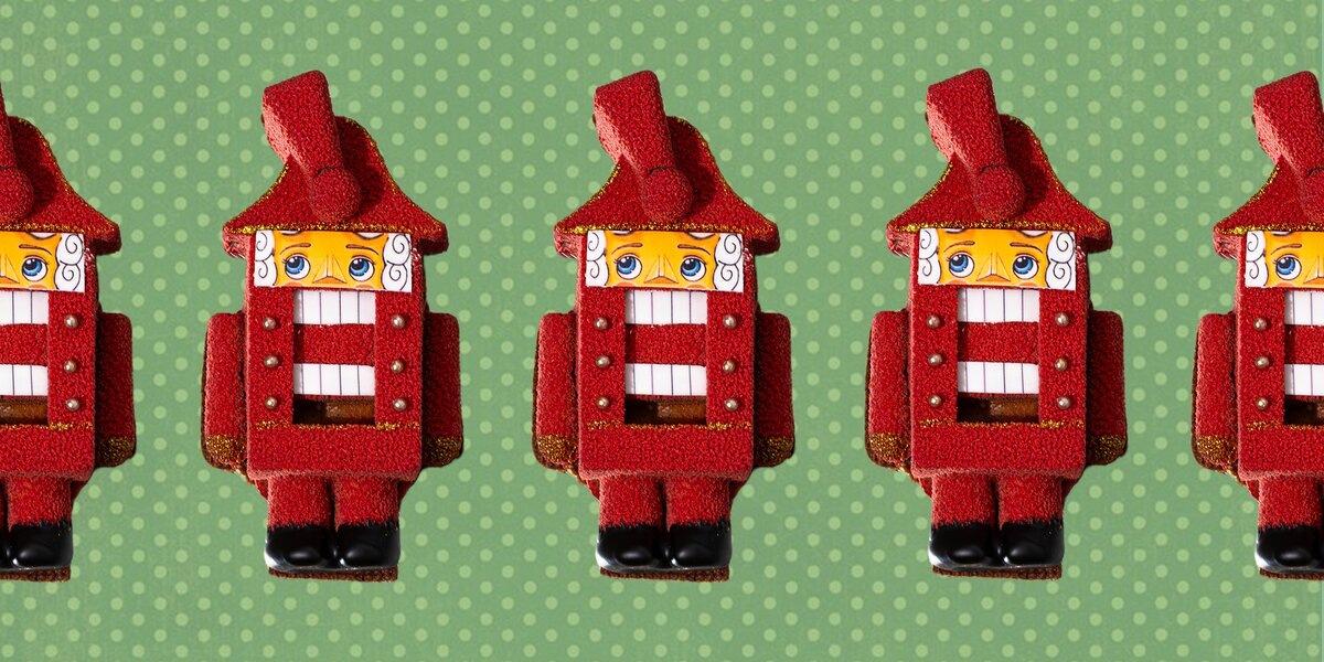 Этот яркий щелкунчик, изготовленный из нежного шоколадного бисквита и завернутый в бархатный велюр, привлечёт взгляды не только детей, но и взрослых.