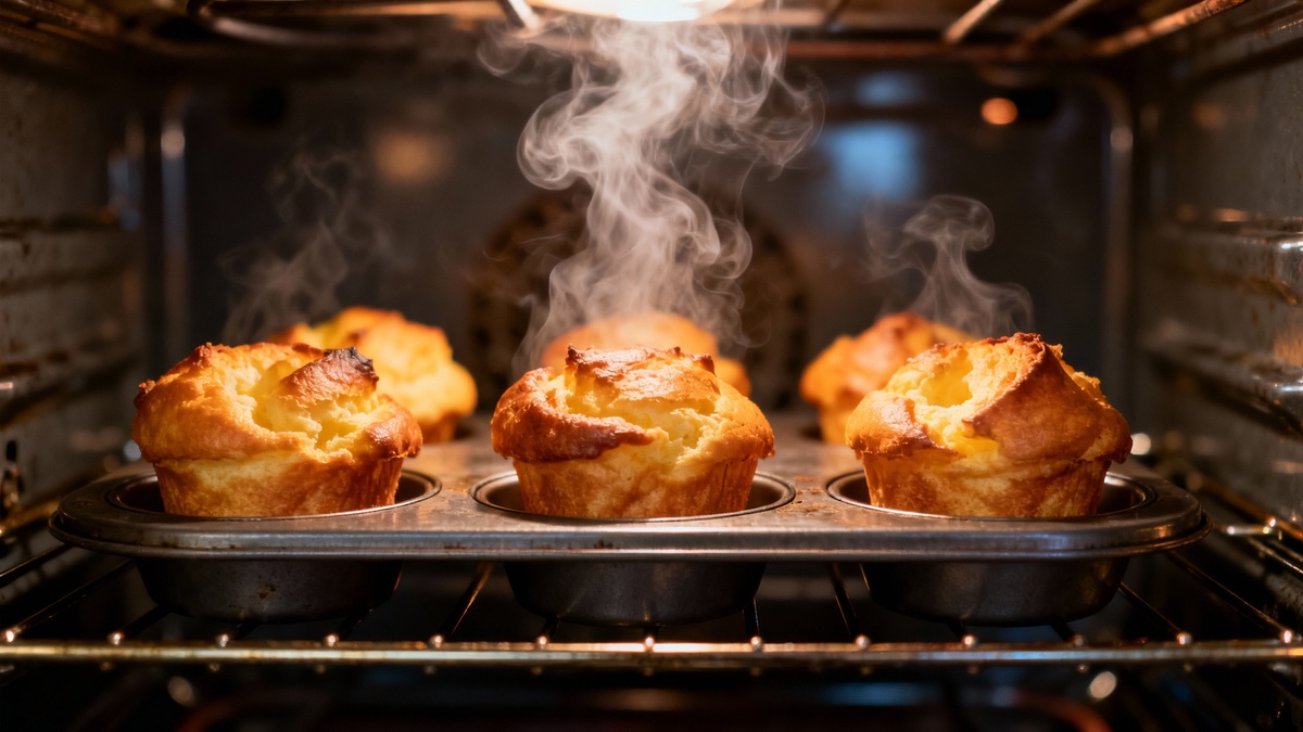 Разогрейте духовку до 220 градусов. Аккуратно заполните формочки тестом, заполняя их примерно на две трети объема. Один из ключевых моментов: во время выпекания не открывайте дверцу духовки, чтобы булочки не осели. Первые 20 минут они должны выпекаться при высокой температуре, затем температуру снижают до 180 градусов и продолжают выпекать еще 20 минут. Так поповеры сформируют характерную «шапочку».