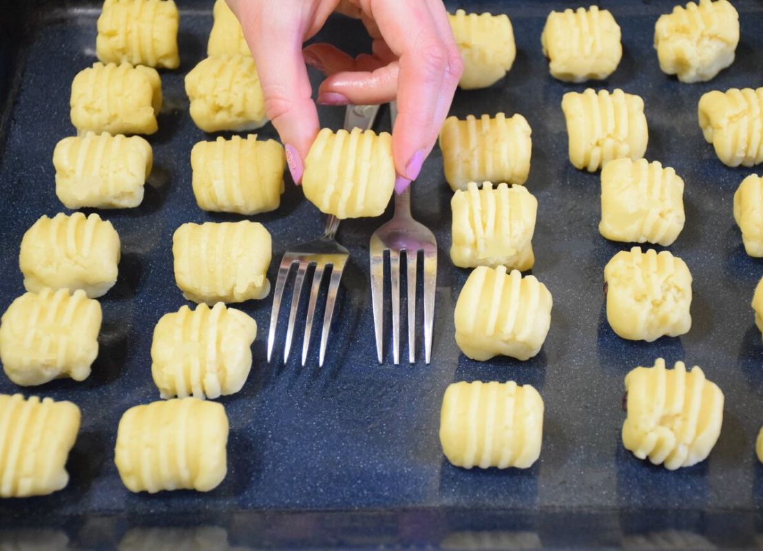 С помощью вилки придают тесту характерную форму печенья и помещают в предварительно разогретую до 180 градусов духовку на 20 минут.