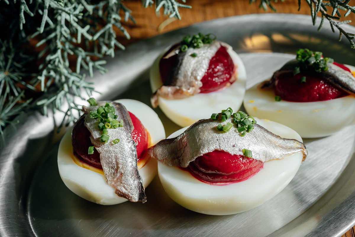 Классическая закуска с ярким свекольным кремом дополнит любое праздничное меню. Для её приготовления понадобится свекла, яйца и анчоусы. Простые в исполнении, эти яйца принесут изюминку на ваш стол.