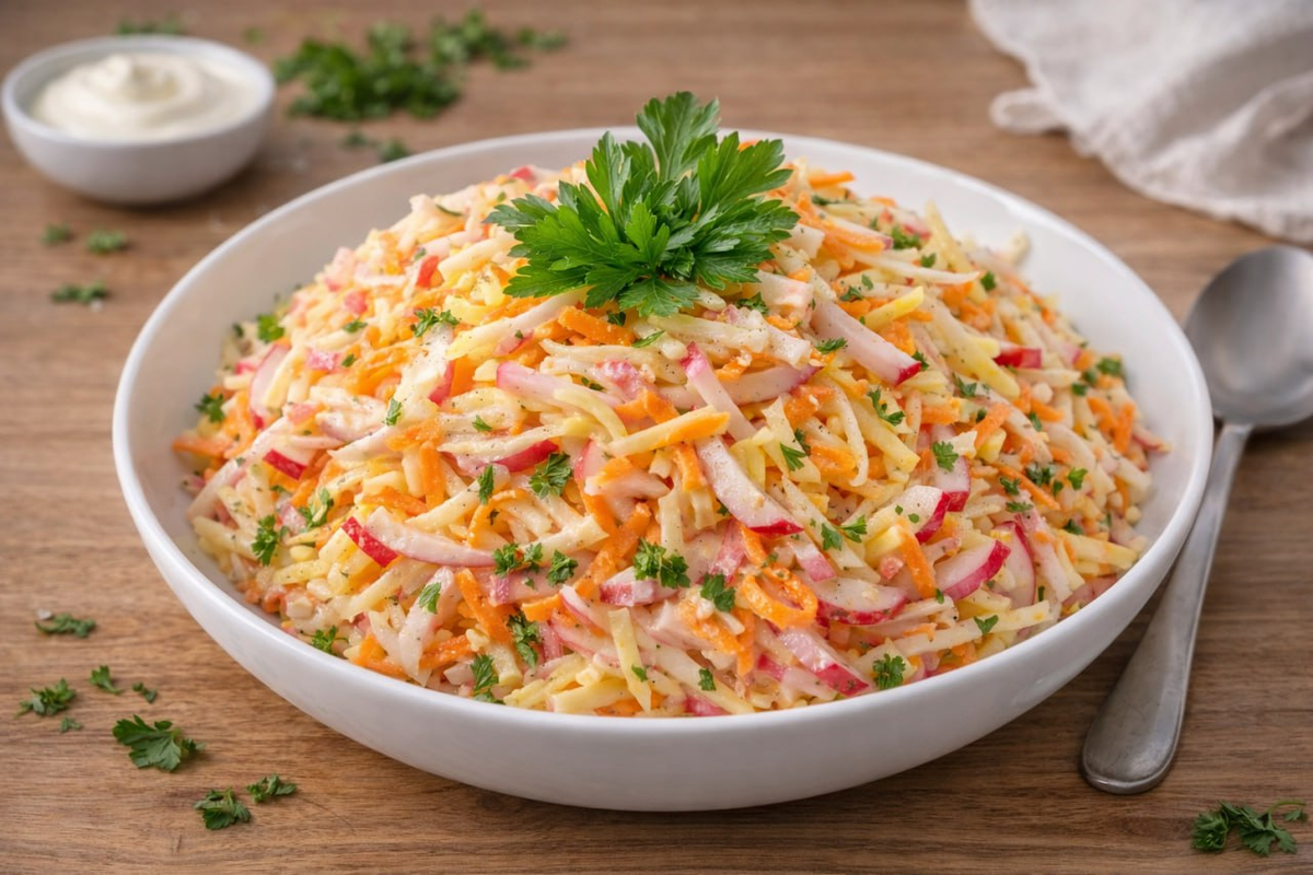 Весна — это время обновления, когда хочется разнообразить свой рацион и добавить немного свежести и легкости. Организм в жаркие дни требует свежих овощей и фруктов, и именно в такие моменты на помощь приходит салат «Витаминка». Этот простой и быстрый в приготовлении салат не только радует глаз, но и дарит ощущение весеннего настроения.