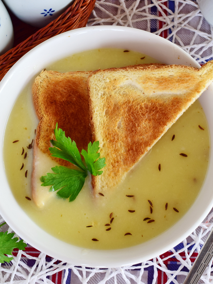 Растереть семена тмина в ступке и добавьте полученный порошок в суп. Хорошо перемешайте. Накройте крышкой и дайте настояться 10-15 минут, чтобы вкус стал более ярким.