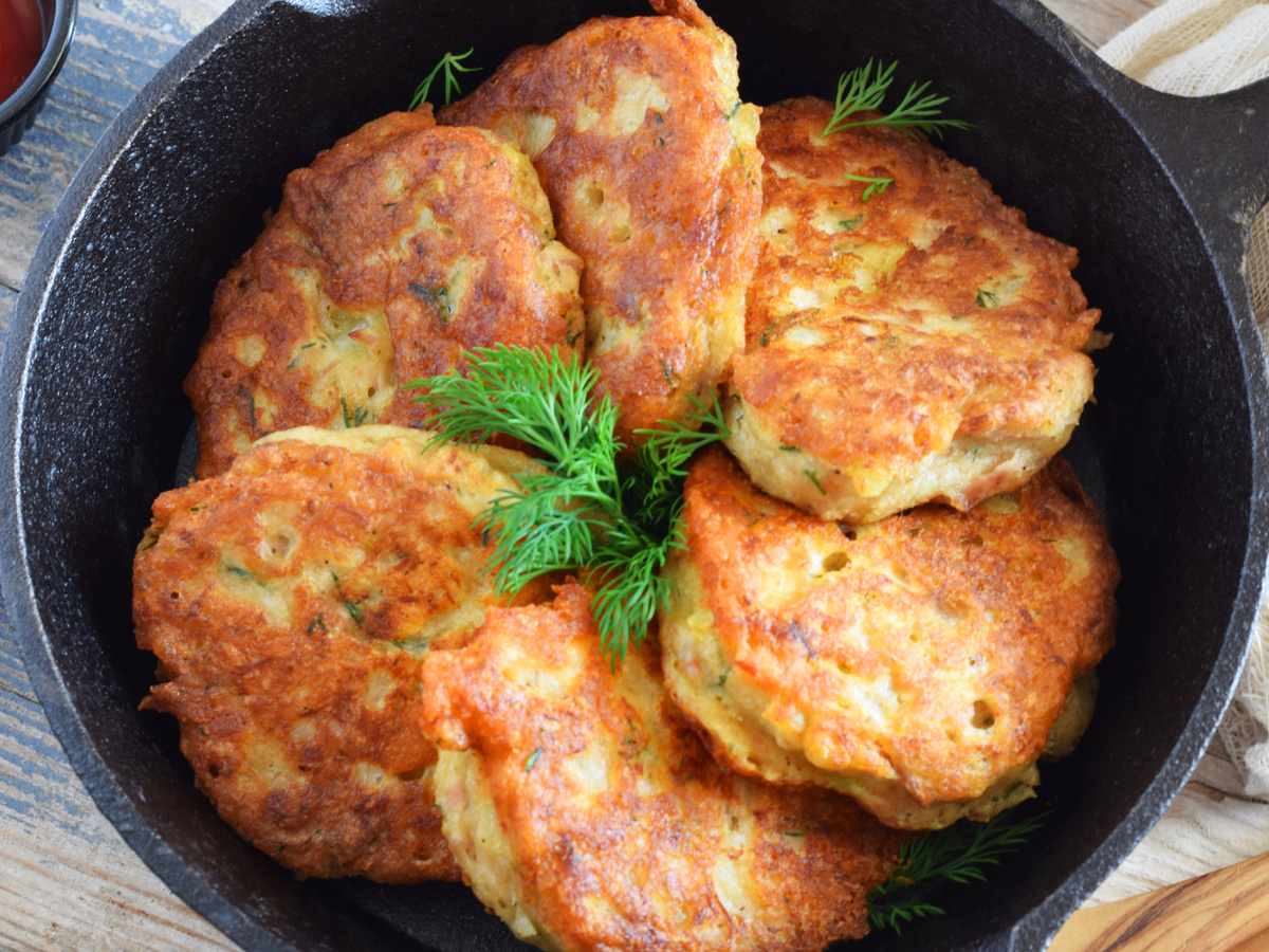 Готовые оладьи лучше всего класть на бумажное полотенце, чтобы удалить излишки масла. Подавайте их горячими с соусами, сметаной или даже просто на хлеб — получится вкусно и необычно!