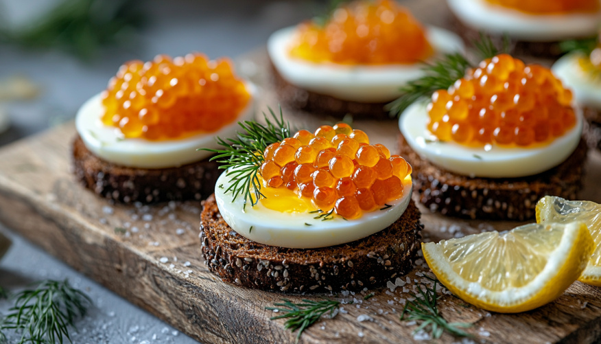В поисках изысканной закуски для вашего праздничного стола? Бутерброды с икрой и яйцом станут настоящим украшением любого застолья. Эти угощения ассоциируются с традиционной роскошью и подойдут для любого праздника. Вот что понадобится для их приготовления: банка красной икры или икры минтая (100 граммов), три вареных яйца, 100 граммов сливочного масла, белый багет или бородинский хлеб, а также зелень для оформления.