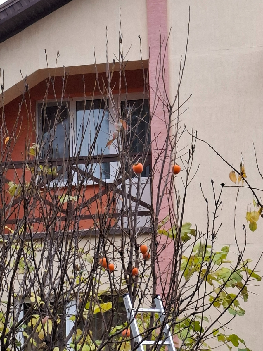 На старой улочке в Анапе было замечено дерево, увитое экзотическими плодами хурмы. Листья уже облетели, но плоды, к счастью, остались. Обнаружить такую красоту за высоким забором получилось не так просто — пришлось немного повозиться, но не каждый день встречаешь хурму в дикой природе.