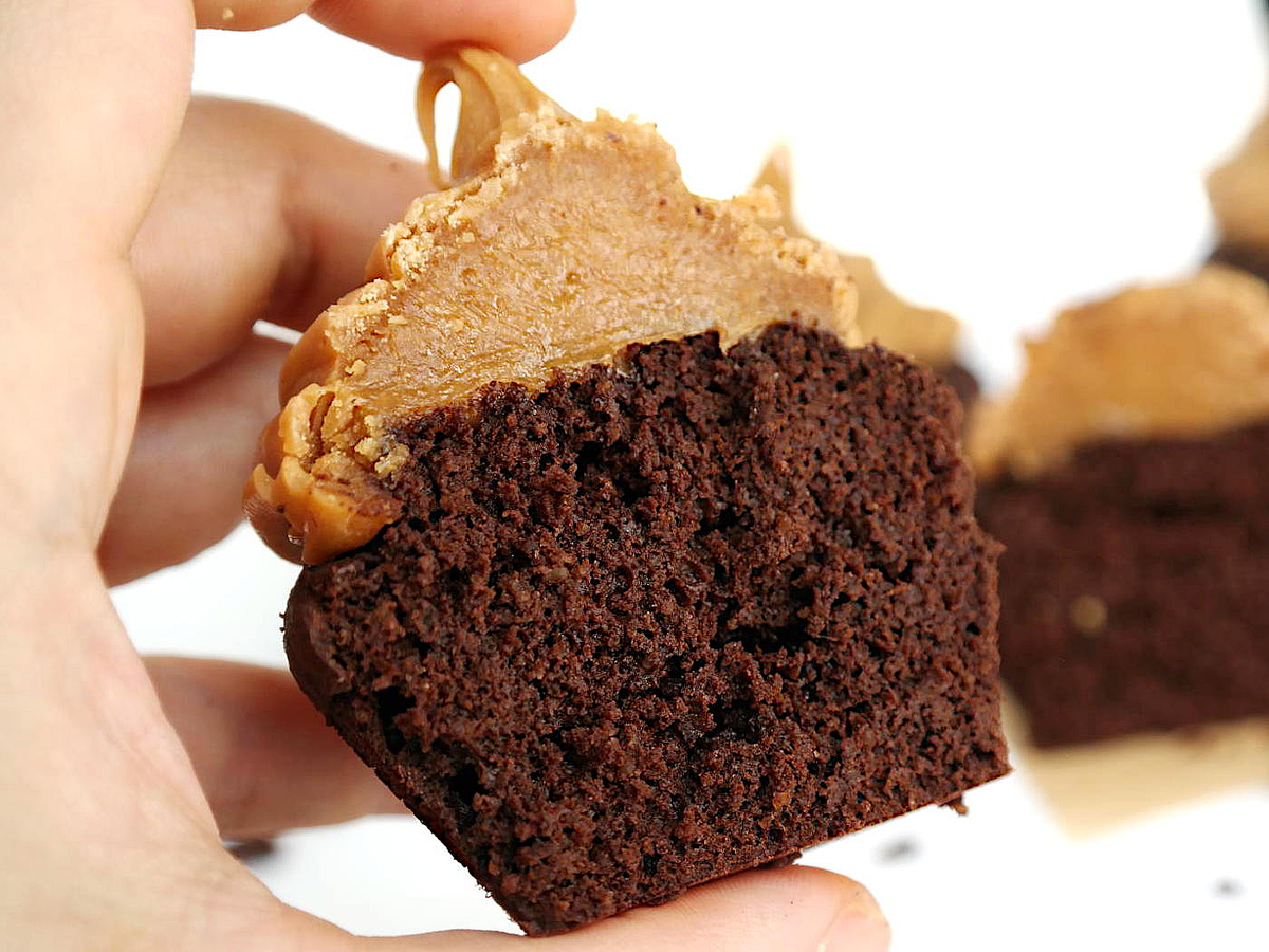 Пышные и насыщенные шоколадом капкейки, дополненные тягучим арахисовым кремом, создают невероятное сочетание, которое наверняка удовлетворит даже самых привередливых сладкоежек.