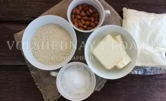 1. Растопите сливочное масло на минимальном огне, избегая кипения, затем добавьте кунжут. Обжаривайте его на небольшом огне, помешивая, до получения светло-золотистого цвета (примерно 5-6 минут). Важно не пережарить кунжут.