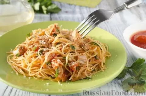 Для любителей морепродуктов идеально подойдут спагетти с тунцом и помидорами. Томатный соус с консервированным тунцом создаёт великолепное сочетание, которое разнообразит ваше меню.