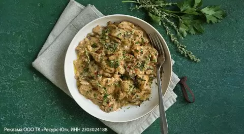 Подготовка ингредиентов: Филе куриного бедра нарезать небольшими ломтиками, поместить в миску и обсыпать 2 ст. л. муки, тщательно перемешать, чтобы каждый кусочек был покрыт мукой. Грибы нарезать пластинками, лук – мелко кубиками, а чеснок – измельчить. Отделить листочки тимьяна от стеблей.Обжаривание курицы: В глубокой сковороде разогреть 3 ст. л. оливкового масла и обжарить курицу до золотистой корочки, переворачивая, около 5 минут. Затем переложить на тарелку.Приготовление соуса: В ту же сковороду добавить оставшееся оливковое масло и обжарить лук около 3 минут. Затем добавить грибы, чеснок и тимьян, приправить паприкой и готовить еще 5 минут. Всыпать 1 ст. л. муки и хорошо размешать.Смешивание ингредиентов: Вернуть обжаренную курицу в сковороду, влить бульон, добавить горчицу и бальзамический уксус, посолить и поперчить. Довести до кипения.Финальная стадия: Уменьшить огонь до минимума и готовить под крышкой 10 минут. Затем вмешать йогурт, посыпать мелко нарезанной петрушкой и снять с огня.