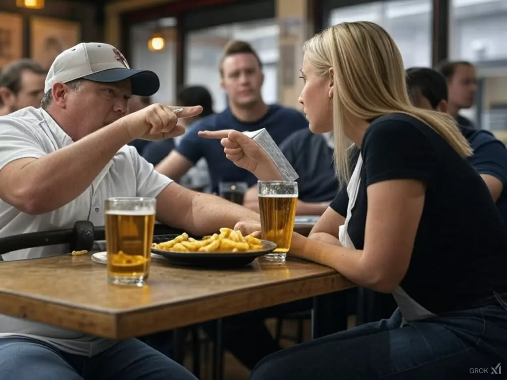 Кристина, несмотря на хамство, сохранила спокойствие и предложила выбрать столик. Спустя некоторое время она вернулась, чтобы принять заказ. Мужчина и его спутница выбрали светлое пиво, и официантка отправилась вниз, чтобы его сделать.