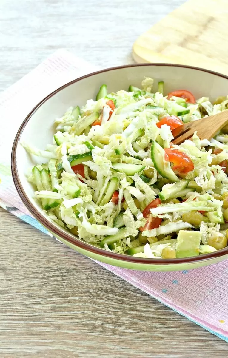 Вот и все! Легкий овощной салат с пекинской капустой готов к подаче. Наслаждайтесь этим великолепным блюдом, которое подарит вам заряд энергии и настроение на весь день!
